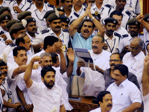 Thiruvananthapuram, Feb 17: CPI-M led LDF opposition members in the Kerala Assembly today disrupted proceedings demanding resignation of "tainted and corrupt" ministers in the UDF government, leading to the adjournment of the House for the day.