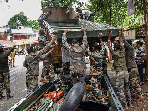 Army personnel pack up their material after carrying out rescue and relief operations in the flood-affected areas, at North Paravoor in Kochi on Monday, Aug 20, 2018. (PTI Photo)