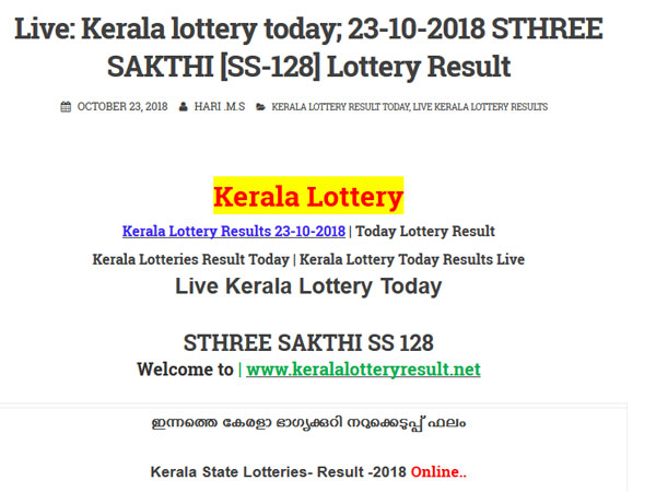 Thiruvananthapuram, Oct 23: The Kerala Lottery today Sthree Sakthi SS-128 Lottery result have been declared. It is available on the official website.