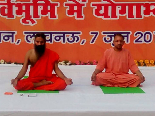 Along with Ramdev, Adityanath also showcased his expertise in yoga.