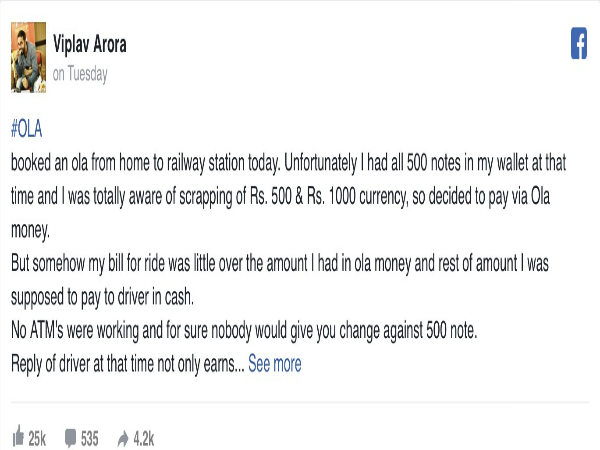 Let us applaud this Ola driver who did his bit to fight black money