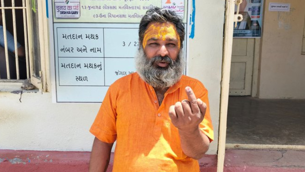 Mahant Haridas is a temple priest in Banej, in Gujarat's Gir Somnath district. Since the temple is located deep within the Gir forest, it is hard for him to visit any polling booths during election season.