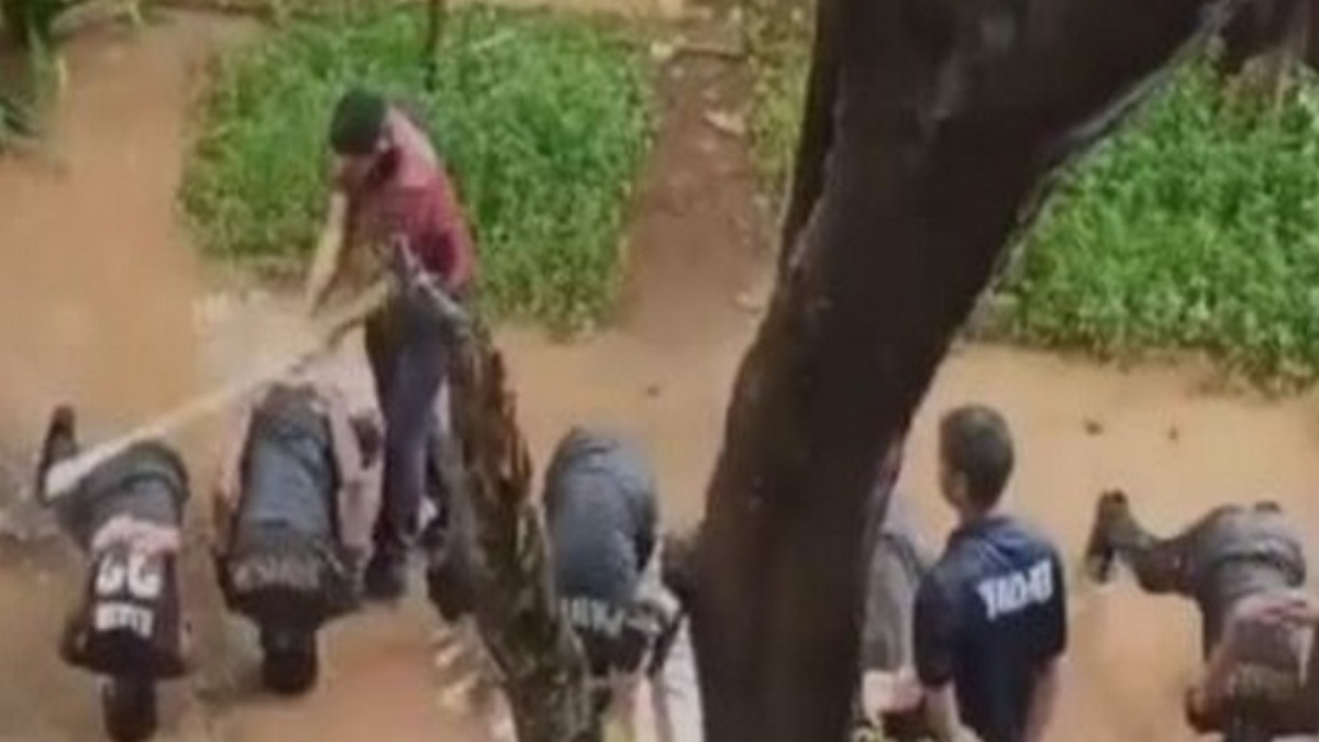 The college management said that it has suspended the student, whose act of beating his fellow NCC cadets during the physical training session on a rainy day was filmed by another student. The video that went viral on Thursday sparked public outrage. The viral video showed eight cadets in a puddle amid rain with their heads pinned in the muddy soil instead of using their hands for support. The senior NCC cadet is seen standing behind them, holding a stick, and whacking each of them one by one for failing to execute his challenging drill. The cadets are seen in a push-up position in a water-logged area with their feet and heads touching the ground and hands folded above the back. When a cadet changes posture, the senior student is seen thrashing him with a stick and going on to thrash others too.