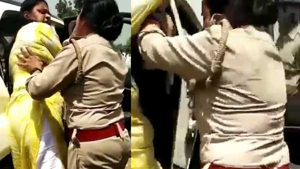 In the video, it could be seen that a woman police official is trying to convince Kesarwani to sit on the back seat of the car but she was repeatedly trying to occupy the driver's seat.