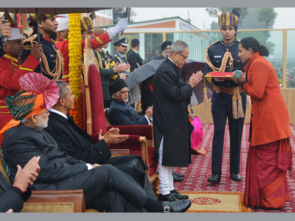 The awards were received by their wives at the 66th Republic Day celebrations, which was graced by US President Barack Obama.
