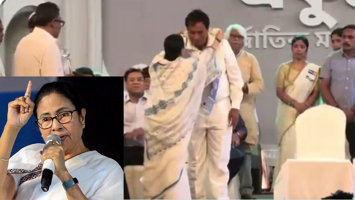 A rare political moment unfolded in Kolkata as BJP Rajya Sabha MP Anant Maharaj was honoured with West Bengal's Banga Bibhushan award by Chief Minister Mamata Banerjee during an International Mother Language Day programme.