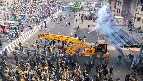 At around 11.30 am, the farmers were proceedings towards Akshardham Temple and were trying to enter Central Delhi. The police allowed them to drive up to Ghazipur and take a U turn. However the police had to resort to firing tear gas shells and cane charging.