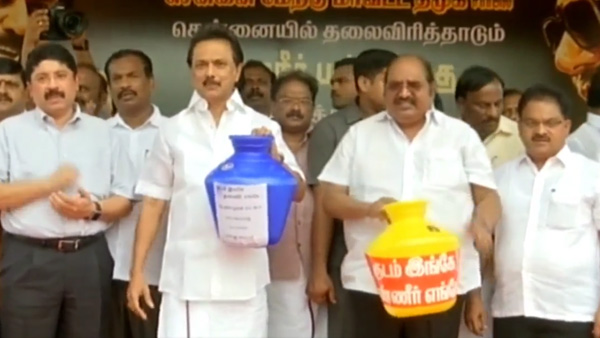 Stalin reportedly said that the city is facing a water famine and lashed out at the AIADMK government for not doing enough to handle the problem.