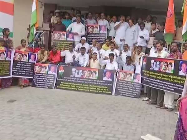 Supporters of Congress MLAs Ramalinga Reddy and Roshan Baig protested demanding ministerial berth for their leaders in Karnataka Cabinet in Bengaluru on Thursday.