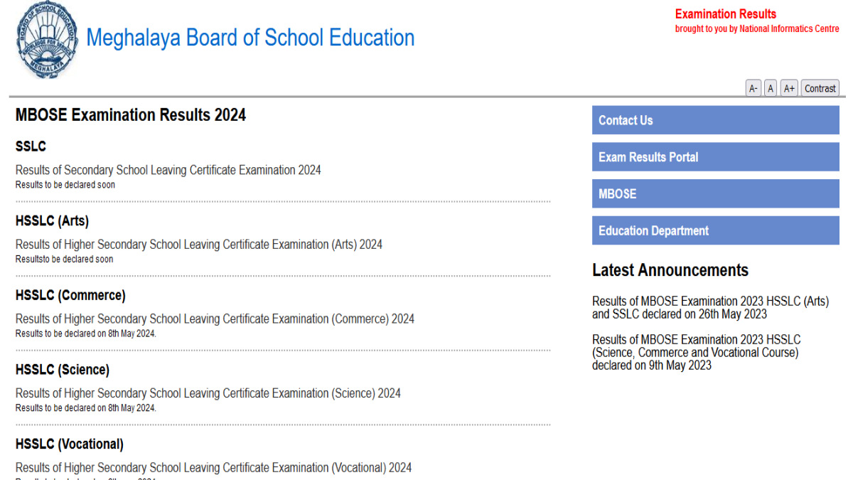 The Meghalaya Board of School Education (MBOSE) is set to announce the results of the Higher Secondary School Leaving Certificate (HSSLC) for the science, commerce, and vocational streams on May 8.