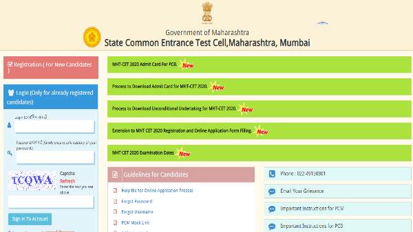 Mumbai, Oct 04: The Maharashtra CET Cell on Sunday released the admit card for the Maharashtra Common Entrance Test 2020 for PCM group on its official website. A notice regarding this has been uploaded on CET's official website.