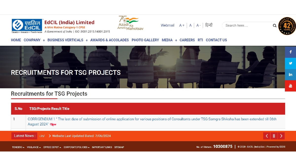 The Ministry of Education, in collaboration with EdCIL, has announced an open call for online applications from eligible candidates for several key positions within the TSG - Samagra Shiksha Project. These positions include Chief Consultant (two positions), Senior Consultant (four positions), and Consultant (12 positions), all on a contractual basis.