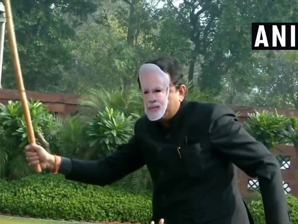 New Delhi, Jan 8: A number of MPs of West Bengal's ruling Trinamool Congress (TMC) on Tuesday, January 8, came up with a unique protest inside the Parliament complex against the Citizenship Bill brought by the BJP-led central government. A video which was posted by news agency ANI showed one of the MPs wearing a mask of Prime Minister Narendra Modi and wielding a stick in his hand and 'intimidating' the other MPs who were playing victims and shouted for help. The idea was to project the prime minister as a leader who cared little for the people and caused them distress through the bill.