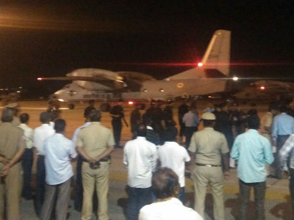 A special Indian Air Force AN-32 flight carrying the mortal remains landed at HAL Airport at around 7. 15 pm.
