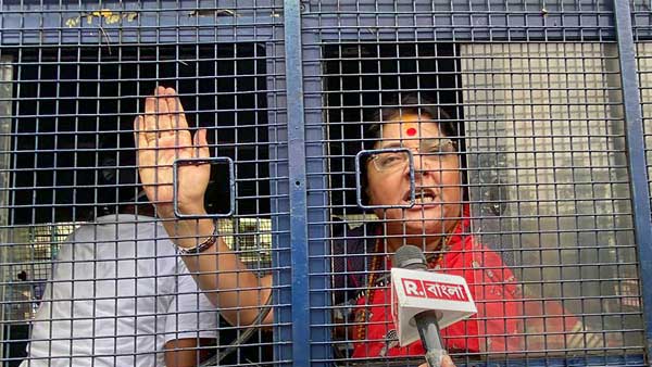 BJP MP Locket Chatterjee and party leader Rahul Sinha were also detained and whisked away in a prison van.