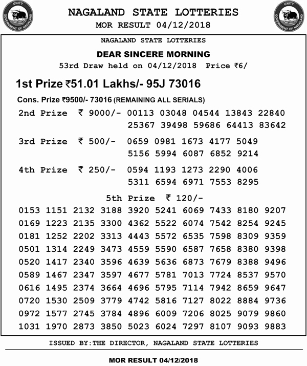 Nagaland Lotteries Dec 4, 11.55 am winning numbers: