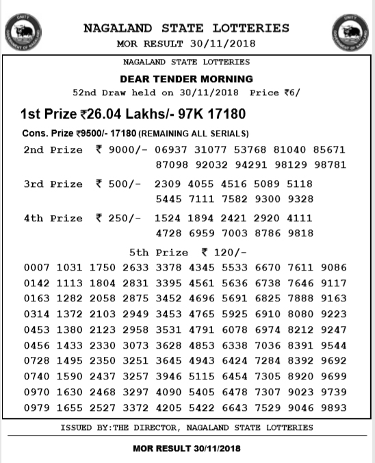Nagaland Lotteries, 11.55 am result November 30 results: