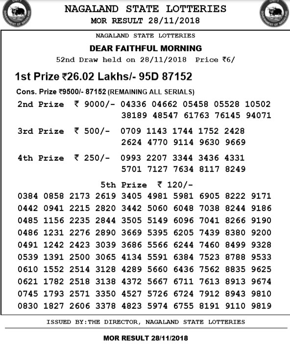 The results of the 11.55 am draw has been released and you can check out the winning numbers below. There is another draw and the results of that would be available from 8 pm onwards. The results are available on http://www.nagalandlotteries.com.