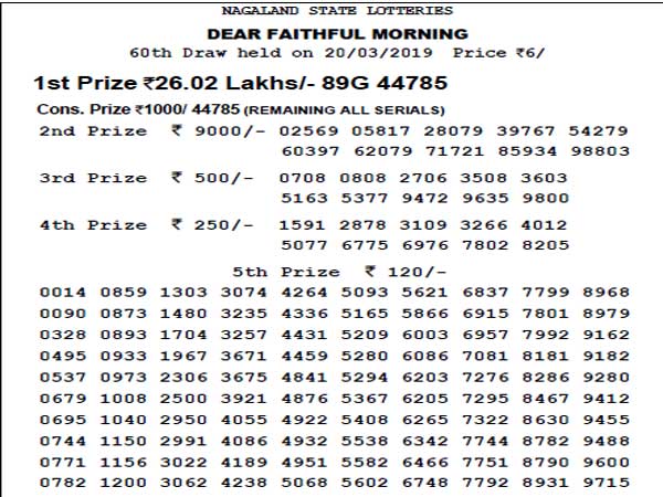 Meanwhile the results of the March 20 draw are available. You can check the results of the Dear Faithful Morning and Dear Eagle Evening Results below. The March 21 results once declared will be available on www.nagalandlotteries.com.