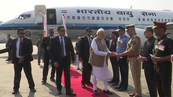 Ahmedabad, Feb 24: Prime Minister Narendra Modi on Mpnday arrived at the Ahmedabad International Airport ahead of US President Donald Trump's visit to the city, where the two leaders will take part in the "Namaste Trump" event at Motera Stadium after holding a roadshow.