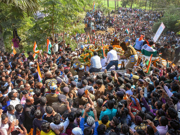 New Delhi, Feb 16: Amid anger and tears, thousands gathered to pay tributes to CRPF jawans killed in Pulwama terror attack. People, with their tears in their eyes, stood on roads with flowers and national flags as the coffins arrived.