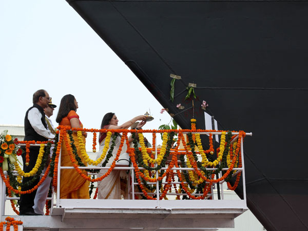Keeping nautical traditions intact, Visakhapatnam was launched by Minu Dhowan, wife of Admiral Dhowan. A naval spokesperson said that Minu Dhowan broke the coconut on ship's bow, named the ship and wished the ship and crew to be, good luck.