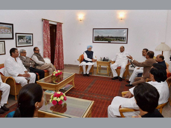 New Delhi, Mar 17: An NCP delegation, led by party president Sharad Pawar, on Tuesday met former Prime Minister Manmohan Singh, who has been issued a court summon in a coal block allocation scam case, and offered their "unstinted" support to him.