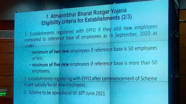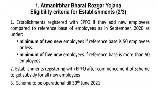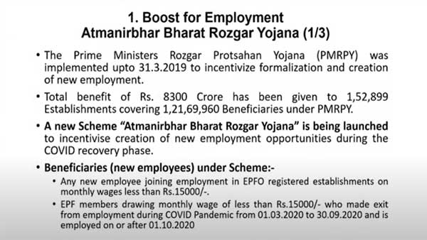 Every EPFO registered orgs - if they take in new employees or those who had lost jobs btw March 1 and Sept 30 - these employees will get benefits, says FM.
