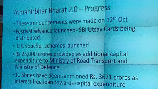 "SBI Utsav cards being distributed, under the festival advance scheme announced on 12th Oct. 11 states sanctioned Rs 3,621 crores as an interest-free loan towards capital expenditure."