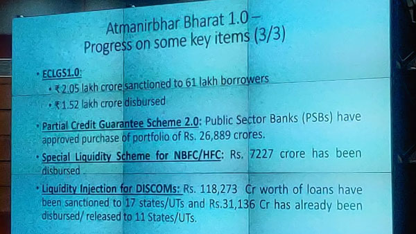 Speaking about Credit Liquidity Guarantee Scheme the Finance Minister said, "Under the Emergency Credit Liquidity Guarantee Scheme, a total amount of Rs 2.05 lakh crores has been sanctioned to 61 lakh borrowers, out of which Rs 1.52 lakh crores has been disbursed."
