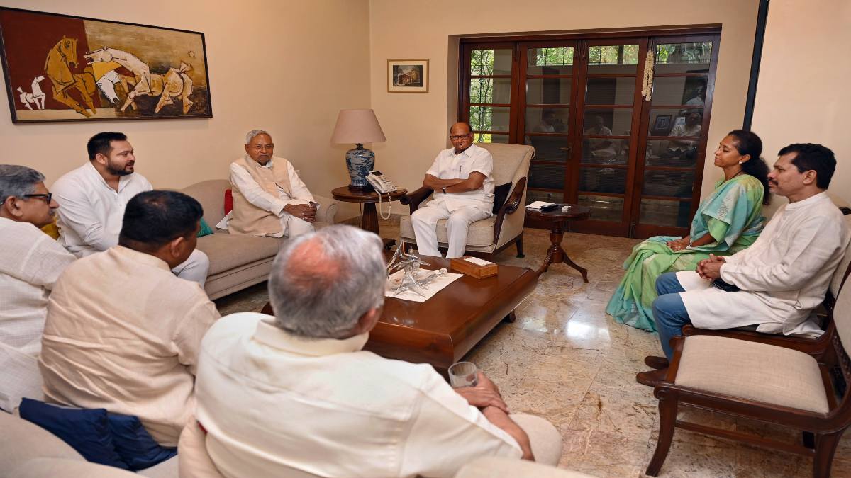 "Welcomed the Chief Minister of Bihar Shri Nitish Kumar ji and deputy Chief Minister Shri Tejashwi Yadav ji at my Mumbai residence today. We had a brief discussion to strengthen the Opposition unity ahead of the Lok Sabha elections," Pawar tweeted after meeting Kumar.