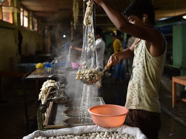Mulberry cocoons being processed inside a silk factory at Solina, in Srinagar on Sunday, July 22, 2018. The oldest silk factory in Kashmir. PTI photo