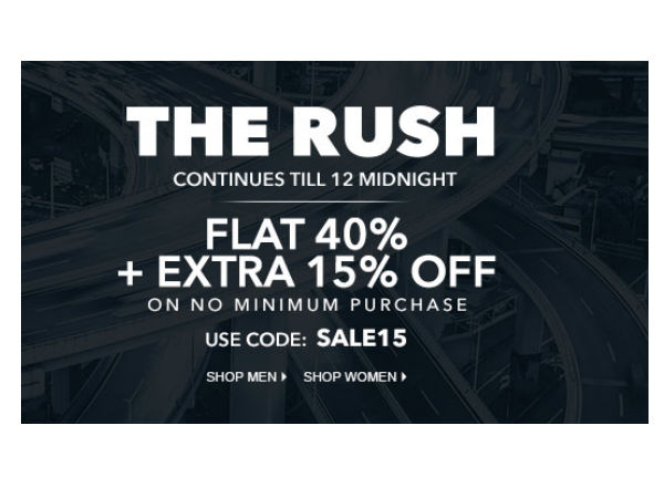 Jabong Rush Hour Sale: Flat 40% Off + Extra 15% Off Use Code: SALE15