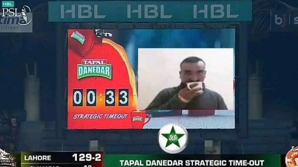 The image, this time was shown during a Pakistan Super League game between Lahore Qalandars and Islamabad United. During the game an image of the Indian Air Force holding a cup of tea was displayed on the giant screen.
