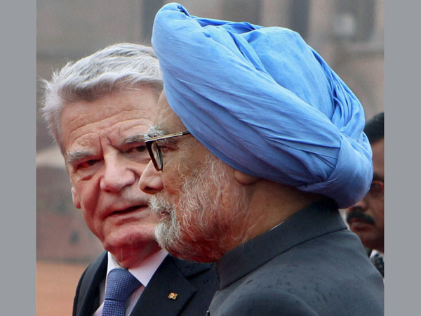 New Delhi: Prime Minister Manmohan Singh with German President Joachim Gauck during the ceremonial reception at the Rashtrapati Bhawan in New Delhi on Wednesday.