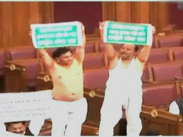 Members of Parliament (MPs) and MLAs of state assemblies stooped to a new low and lost their dignity in the eyes of the people of the country. When continuous protests over Telangana bill in Parliament, both Lok Sabha and Rajya Sabha, ashamed the country, MLAs in Uttar Pradesh assembly on Wednesday, Feb 19 went shirtless.