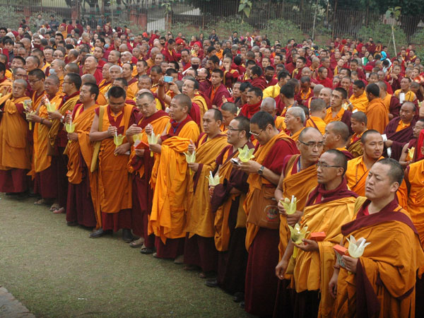 Buddhist monks offer prayers in Sarnath, 13 km away from Varanasi