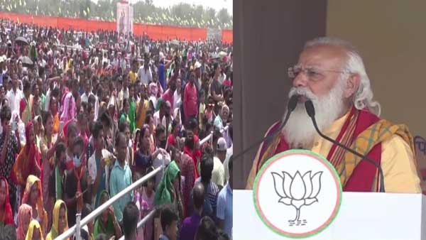 Guwahati, Apr 03: Prime Minister Narendra Modi today halted his speech in Tamulpur, Assam and asked the medical team of the PMO to check a dehydrated BJP worker.