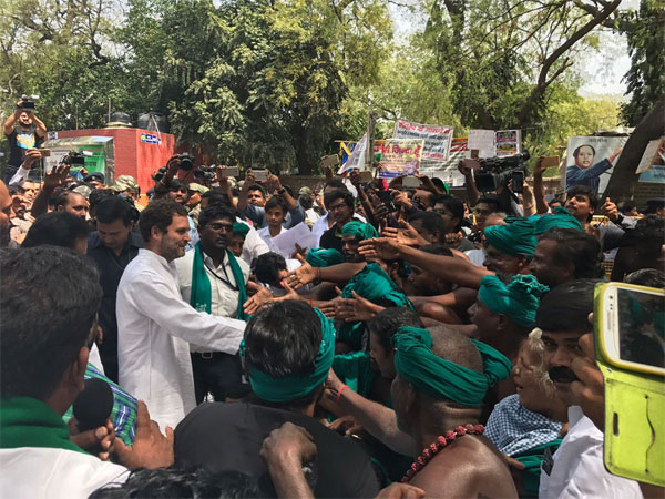 Vice president of AICC, Rahul Gandhi met agitating farmers from Tamilnadu at Jantar Mantar on Friday. Accepting a green shawl handed over by the protesting farmers, Rahul Gandhi sat with the agitators who displayed skulls of other farmers who committed suicide due to debts. Accusing the government of failing the poor of the country, Rahul Gandhi questioned relief offered to the rich and influential.