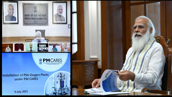 PSA oxygen plants contributed by the PM CARES fund are coming up in all states and districts of the country, and Modi was told that they will support more than 4 lakh oxygenated beds once functional, the PMO said.