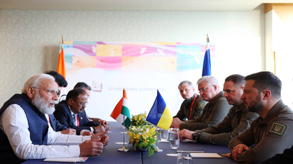 Prime Minister Narendra Modi on Saturday met Ukrainian President Volodymyr Zelensky on the sidelines of the G7 Summit in Hiroshima, Japan.