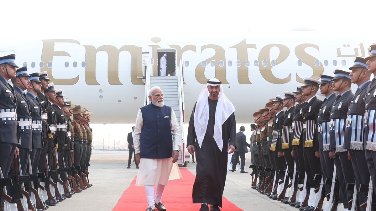 Prime Minister Narendra Modi on Monday received UAE President Sheikh Mohamed bin Zayed Al Nahyan at the Delhi airport during the latter's short but significant visit to India, highlighting the growing strategic depth of ties between New Delhi and Abu Dhabi.