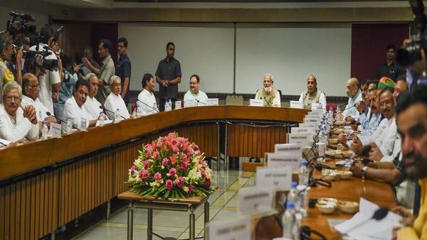 Several opposition parties had skipped the meeting which comes weeks after PM Modi's Bharatiya Janata Party delivered a stunning performance in the national elections, winning 303 of the 542 seats up for grabs.