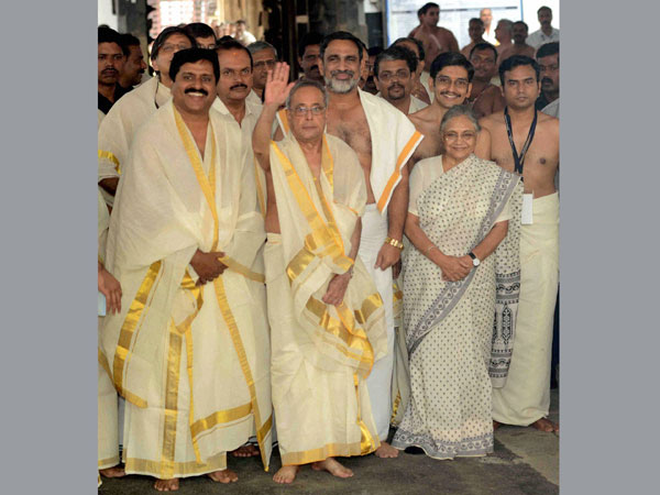 Mukherjee, who was accompanied by Kerala Governor Sheila Dikshit, was received at the western portal of the grand complex by temple Executive Officer K N Satheesh and other officials.