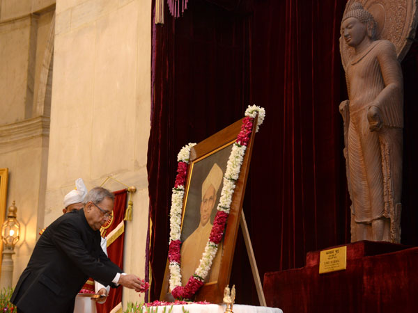 President of India, Pranab Mukherjee paying tribute to former president Dr Sarvepalli Radhakrishnan in Darbar Hall at Rashtrapati Bhavan.