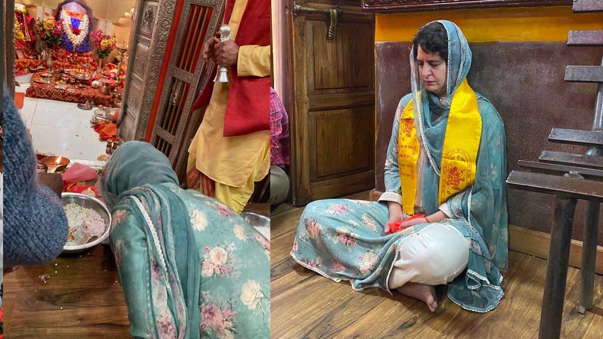 Priyanka visits Hanuman temple even as Congress wants to ban Bajrang Dal