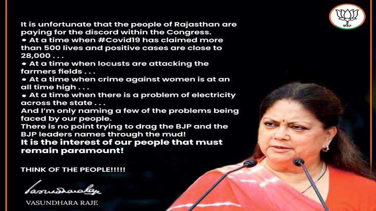 Rajasthan first: Vasundhara Raje reacts for first time after crisis outbreak
