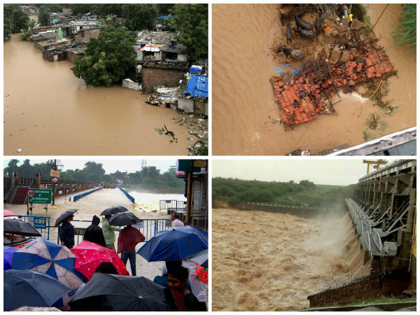 The downpours in Gujarat and Rajasthan have wreaked havoc across the two states. Normal life came to a standstill and road, airport and rail traffic was severely affected.