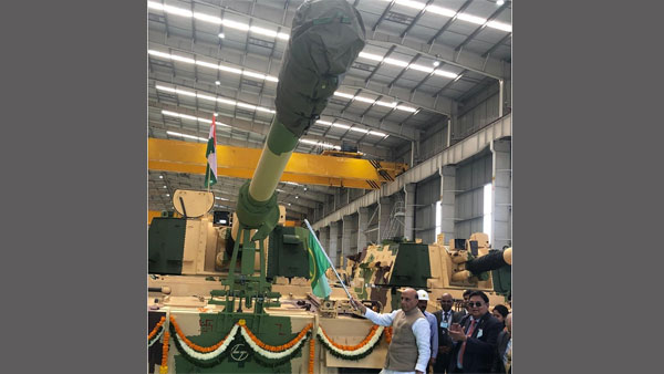 Hazira, Jan 16: Defence Minister Rajnath Singh on Thursday flagged off the 51st K-9 Vajra-T gun at the Larsen and Toubro Armoured Systems Complex at Hazira, Surat.