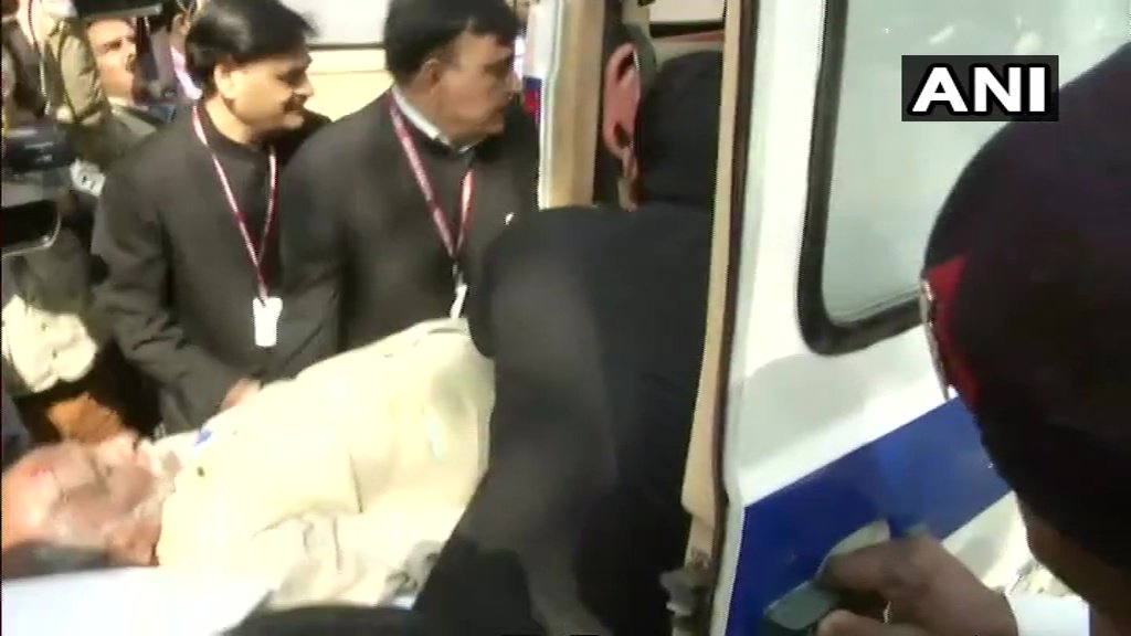Odisha MP AV Swamy fell down in the Parliament premises on Friday. He was immediately rushed to the hospital.